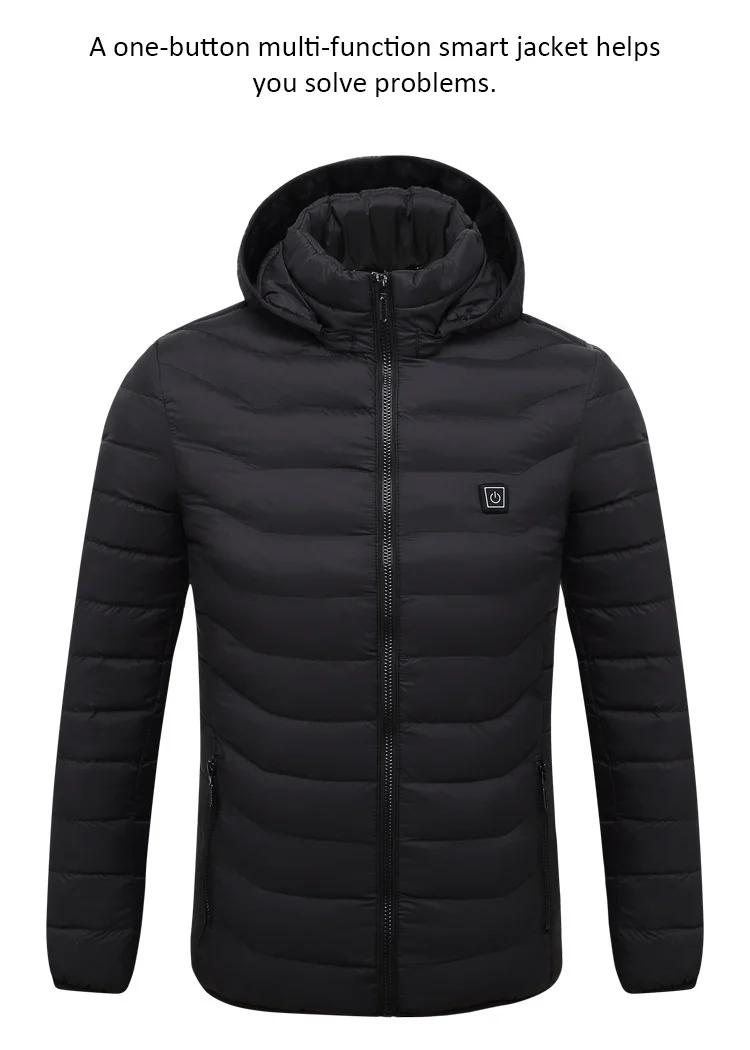 Stay warm and comfortable with the USB Heated Winter Jacket, designed for both men and women. This jacket features 19 strategically placed heating zones to keep you cozy in the cold. Powered by
